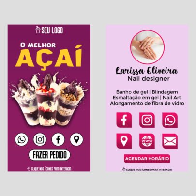 Vou criar seu cartão de visita digital e interativo com todas as informações do seu negócioSeus contatos, trabalhos e redes sociais a um clique do seu cliente!